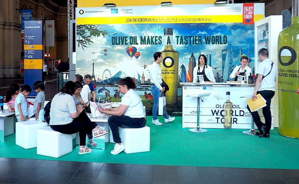 La campaña Olive Oil World Tour, lanzada en mayo de 2018, se ha venido desarrollando bajo un único lema, “Olive Oil Makes a Tastier World”, invitando a descubrir a los viajeros las propiedades de los Aceites de Oliva, que son emblema de la excelencia europea. Alemania, uno de los grandes consumidores de aceite de oliva, es un destino prioritario de estas acciones dado su importancia como gran consumidor de este ingrediente único.
