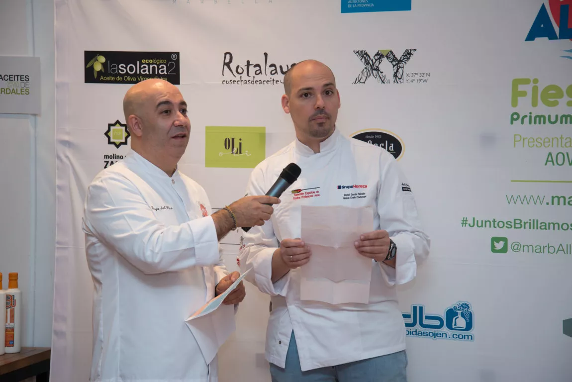 Los chefs que han elaborado sus creaciones de Alta Gastronomía con los AOVEs recién cosechados son los siguientes: de Málaga, además del Chef Ejecutivo del Hotel Don Carlos y todo su equipo, Miguel Ángel Chaves; Fernando Sánchez de la Clínica Buchinger; Juan José Carmona, del restaurante El Lago, estrella Michelin; Sebastián Conejo; Chef Ejecutivo del Hotel Los Monteros; Victor Gutiérrez, Chef Ejecutivo del Gran Hotel Elba de Estepona; Martín Dorado, Chef del restaurante 1870: Nacho Torregimeno del Hotel Las Dunas; Richard Alcayde y Jordi Bataller, de La Cocina Gastrolab; José Carlos García Marala, Chef Ejecutivo del Hotel Meliá Banús y del restaurante D.O.M; Thomas Stork y Tim Van Buchen, primero y segundo Chef del Hotel Puente Romano y Abraham Garrote, de La Solana de Fuengirola. De fuera de Málaga, el estrella Michelin José Álvarez, del restaurante La Costa, de El Ejido en Almería; Carlos Caballero, de Pilsa, y Javi Blazquez, del restaurante La Morarilla de Villanueva del Arzobispo (Jaén). Además de Manuel Mérida, del Hotel Best Tritón, de Benalmádena y Charo Carmona, de Arte de Cozina de Antequera.