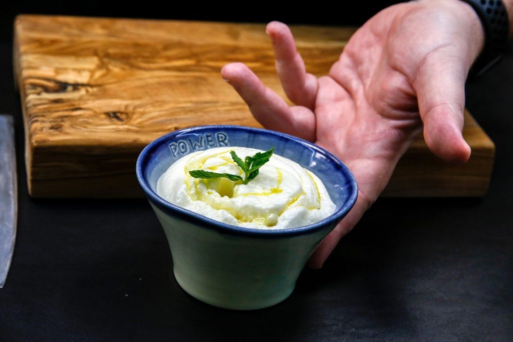 YOGUR EMULSIONADO CON AOVE Y SU HELADO