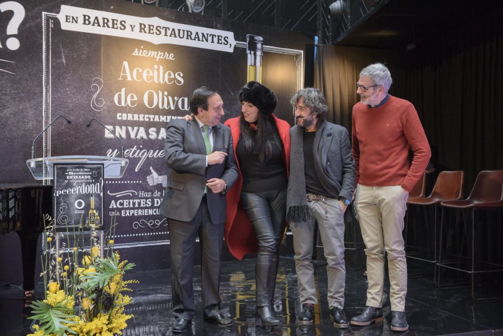 “¿Peeerdona?” es una campaña informativa para dar a conocer entre consumidores y profesionales de la restauración la norma de presentación de los aceites de oliva. Tendrá fuerte presencia en televisión, cines y redes sociales. El 86% de los consumidores desconoce que los establecimientos de hostelería tienen la obligación de usar envases irrellenables o monodosis para presentar los aceites de oliva. Sus tres protagonistas, Rossy de Palma, Diego Guerrero y Mikel Iturriaga, aparecen en la imagen junto al presidente de la Interprofesional del Aceite de Oliva, Pedro Barato.