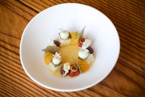 Ingrid Serra, Alberto Gil y María Lorenzo optarán este lunes, 28 de septiembre, en la lonja del Palacio Provincial jienense, a ganar este certamen dotado con 12.000 euros en premios. En la imagen, Citrus Aove, receta de Ingrid Serra, una de las tres finalistas.