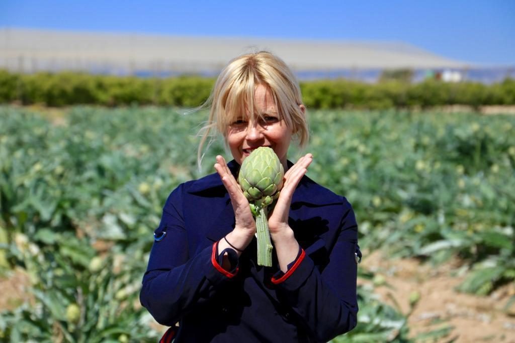 “Para mí es un honor haber sido elegida madrina de la alcachofa. Estoy absolutamente fascinada. Soy una gran consumidora de alcachofa, las como todas las semanas, y estar en este campo para mí es como estar en la película de ‘Charlie y la fábrica de chocolate’”, ha explicado la actriz, que además ha apreciado la posibilidad de ver de dónde viene un alimento básico en su dieta. “Ojalá todos los niños puedan venir a campos como éste”, señaló.