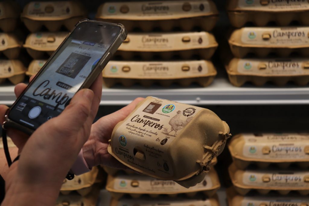 Escaneando el código QR disponible en el envase, se puede acceder a la información del tipo de producción de los huevos, localización de la granja, datos de la gallina como la edad, así como información sobre la alimentación que ha recibido, la clase de huevo por tamaño y su fecha de recogida, envasado, expedición y caducidad, ofreciendo además información sobre la recolección y el embalaje.