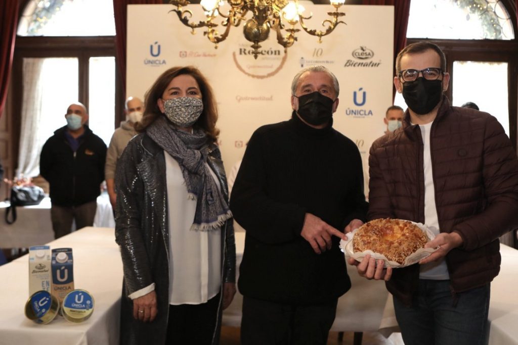 El pastelero Antonio García, de Panem, ha resultado ganador del IV Campeonato de Roscones Artesanos organizado por Gastroactitud, portal gastronómico y de formación de referencia para el sector. Un total de 10 roscones han competido por el título de Mejor Roscón de Reyes Artesano ante un jurado presidido por el maestro repostero Paco Torreblanca. La selección no ha sido fácil porque la calidad de los roscones artesanos que se elaboran mejora año a año. En esta ocasión, lo han puesto muy difícil y por eso se ha valorado también cómo evolucionan los roscones, si se endurecen con rapidez o aguantan tiernos, síntoma inequívoco de una buena fermentación. Desde ediciones anteriores, se percibe menos presencia de aromas sintéticos o frutas escarchadas de escasa calidad y aumenta la presencia de la mantequilla, las almendras y la naranja confitada. La final se ha celebrado en históricos salones del restaurante Lhardy, sin duda, uno de los espacios más emblemáticos de la capital. El concurso ha contado con el apoyo de Únicla y Clesa (que ha premiado al ganador con 2.500€ en productos lácteos que se donarán a una ONG), además de Duo Harinero y Le Cordon Bleu Madrid. En la imagen, el ganador con su obra, junto a Paco Torreblanca y Julia Pérez, directora de Gastroactitud.