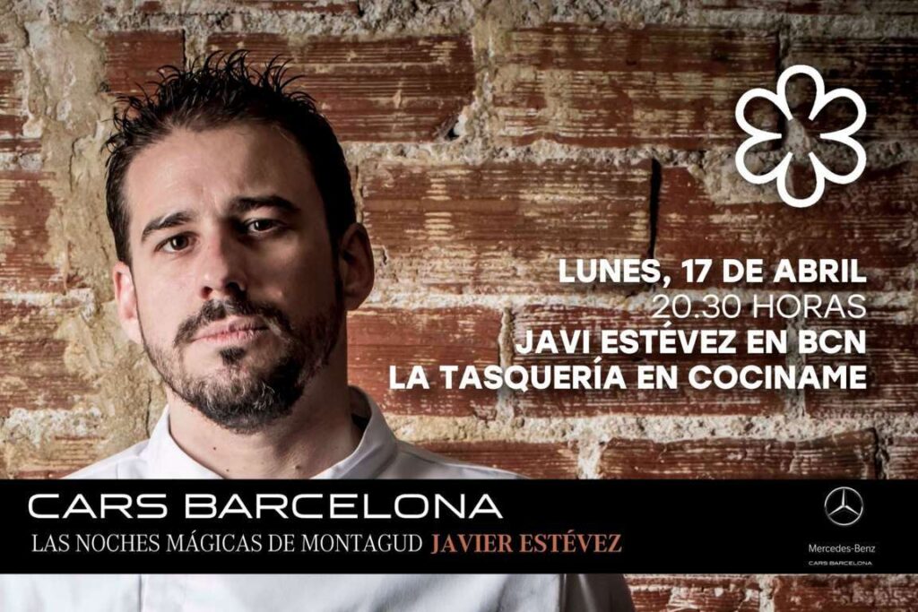 El chef madrileño Javi Estévez aterrizará el próximo lunes 17 de abril a las 20:30h en el espacio CocinaME, celebrando la sexta edición de Las Noches Mágicas de Montagud by Mercedes Benz – Cars Barcelona.