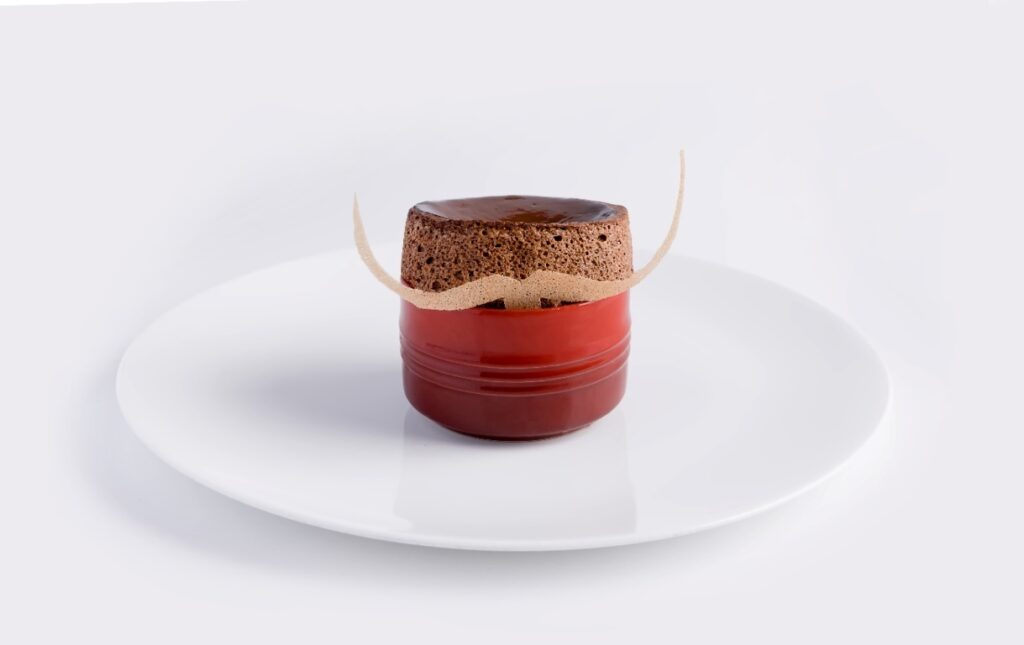La creatividad no queda atrás a la hora del postre. Los comensales podrán disfrutar de un clásico Sorbete al “vieux champagne”, coronando la experiencia con un Suflé Kocisky (receta 123) caracterizado por su aroma a café y un detalle representando el icónico bigote que hace tan reconocible a Dalí.