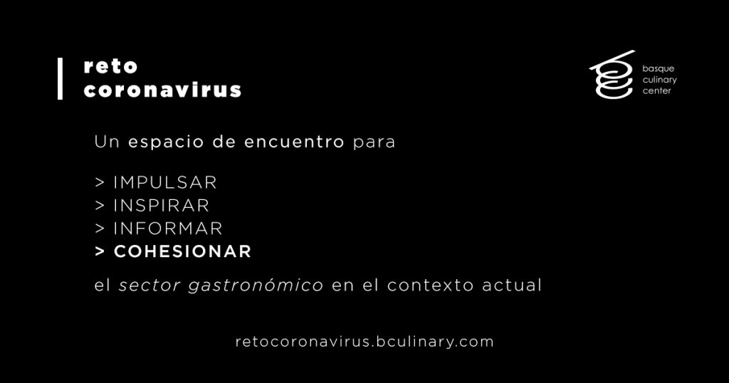 Conscientes del impacto que la pandemia del COVID-19 está teniendo sobre el sector gastronómico y de cómo sus actores se encuentran singularmente implicados en un reto sin precedentes, Basque Culinary Center ha creado un espacio de encuentro para informar, inspirar, impulsar y ayudar a cohesionar el talento y el conocimiento que el sector necesita para hacer frente a la actual situación.