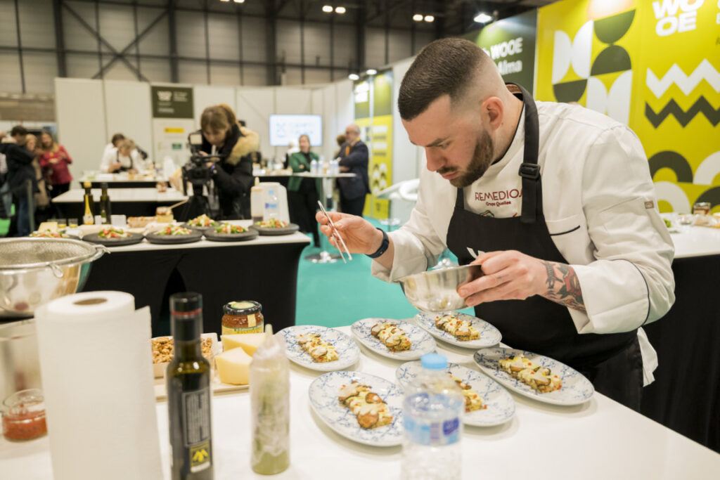 El chef italiano Carmine Bavuso, del restaurante Remedios, se ha proclamado ganador del concurso ‘Desafío WOOE Campo y Alma Castilla-La Mancha’. Esta es una de las actividades más señeras de la Feria Mundial del Aceite de Oliva (World Olive Oil Exhibition), la mayor cita monográfica del mundo dedicada al sector del aceite de oliva, que se celebró en Ifema Madrid. Este concurso de cocina en directo premia el mejor plato, en función de su creatividad y del empleo del aceite de oliva en su elaboración. En este caso, se planteaba una ensalada creativa, para la que los concursantes debían utilizar queso, miel, nueces y AOVE de Castilla-La Mancha.