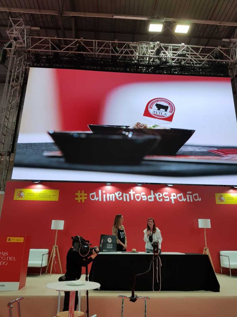 “Hemos vuelto a superar la barrera de las 5.000 canales, más de 5.500 canales marcadas durante 2021”, indica Pedro L. Herráiz, secretario de la IGP Carne de Avila. En un año marcado por los elevados precios de las materias primas, y no solo en los piensos, también las distintas fuentes de energía, y la continuación de la terrible pandemia COVID-19, la Indicación Geográfica Protegida Carne de Ávila ha conseguido un importante incremento del 8% de las canales amparadas respecto del año anterior. Este aumento pone de manifiesta el gran esfuerzo por parte del sector de la industria que trasforma y comercializa el producto, que como se sabe ha sufrido el incremento de los precios en las materias primas, fungibles y energía. “Donde se ha notado que se estabilizan las ventas es en el canal on line, las plataformas web de venta por internet”, añade Herráiz. En la imagen, presentación de Carne de Ávila en el Salón de Gourmets.
