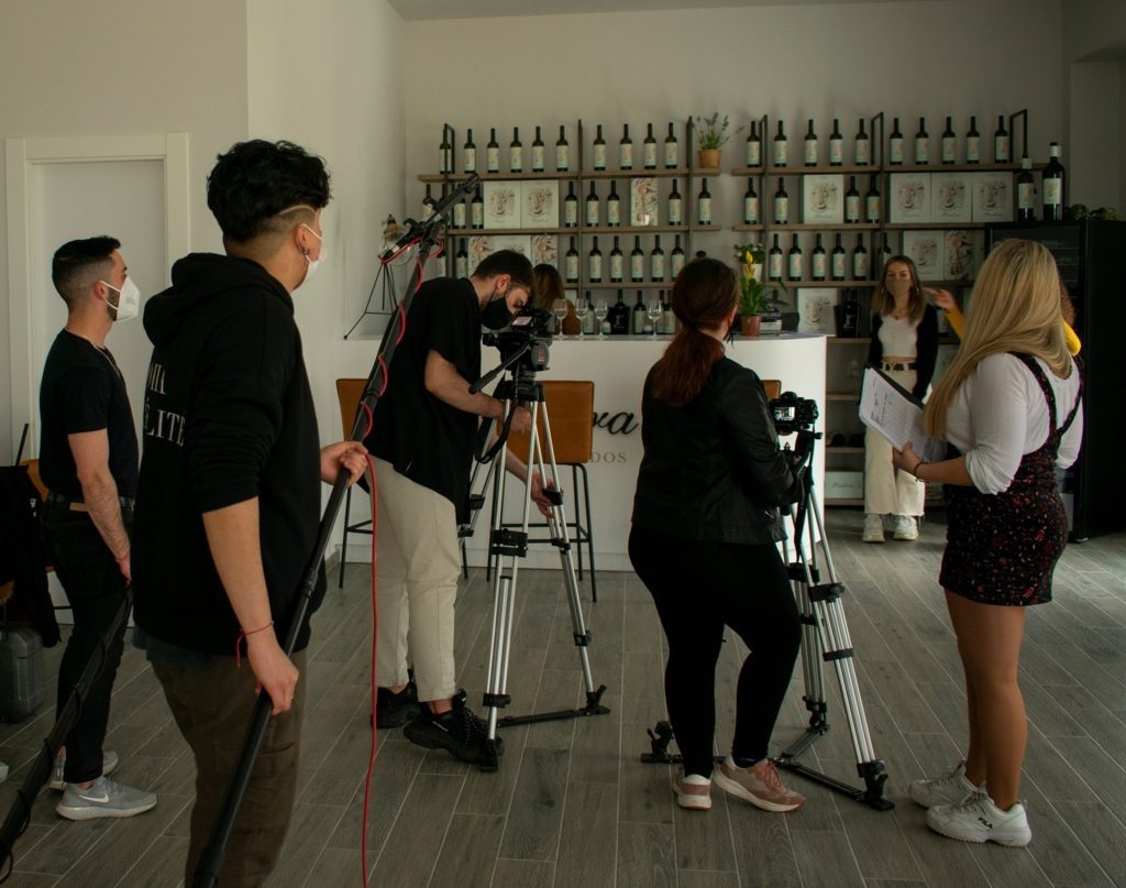 Los cortometrajes participarán en la VI edición del Festival Rueda con Rueda y optarán a 10.000 euros en premios. Un total 39 bodegas la DO Rueda ofrecen sus instalaciones y viñedos para grabación de los trabajos a concurso. El plazo de recepción de cortos se mantiene abierto hasta el 28 de septiembre. En la imagen, rodaje en las bodegas Pandora.