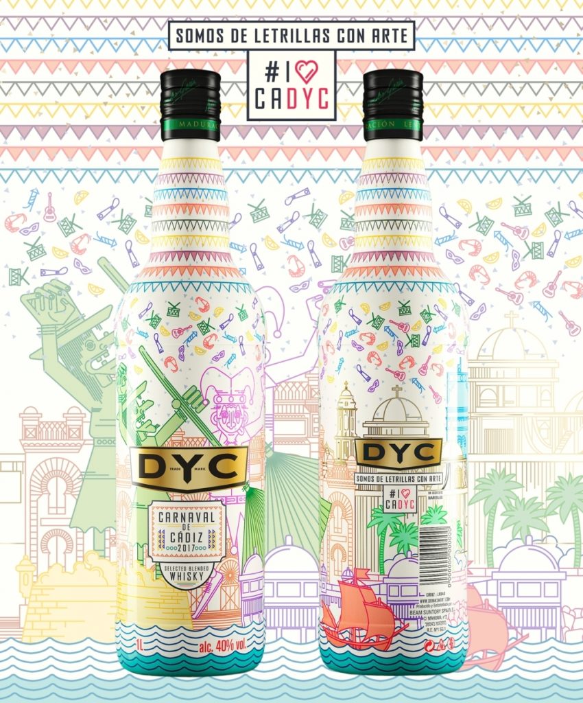 Los grandes protagonistas de esta fiesta, como la Bruja Piti, el Rey Momo, el Teatro Falla o la catedral, visten al primer whisky español para rendir homenaje a esta fiesta, en línea con su filosofía ‘Celebremos lo que somos’. El compromiso de DYC con el Carnaval y los gaditanos es visible, además, en el patrocinio de la comparsa ”Los Peregrinos” de Juan Carlos Aragón y de la Chirigota del Selu “Mi suegra como ya dije”.