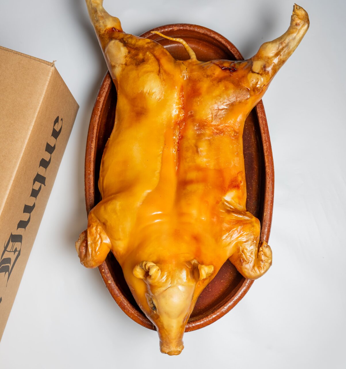 El famoso cochinillo asado de Casa Duque listo para disfrutar en casa.