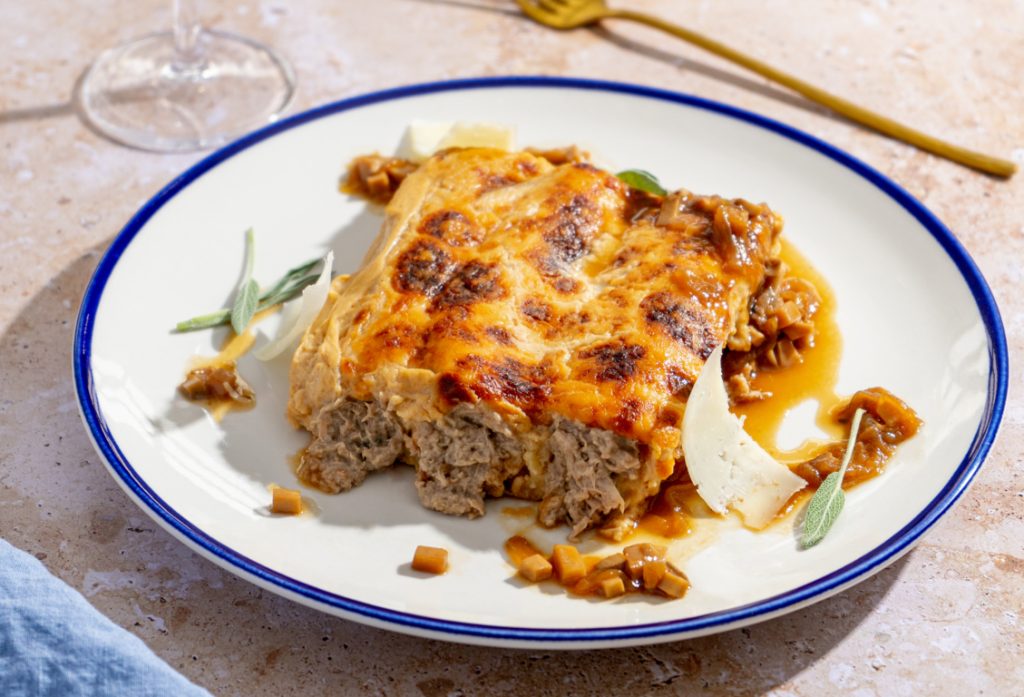 Tacos de cordero pibil, salsa de chile morita y cebolla encurtida, y canelón de cordero y salsa de boletus (en la imagen), son las dos recetas creadas por el equipo de Wetaca para Interovic que estarán disponibles a domicilio y en edición limitada solo durante el mes de noviembre.