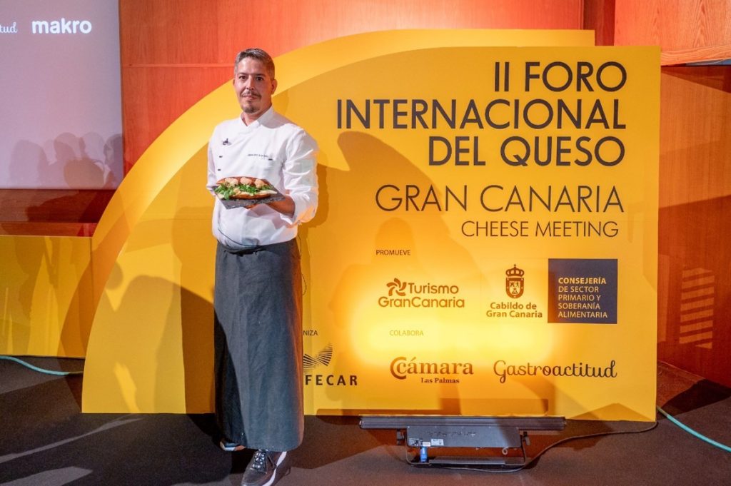 El II Foro Internacional del Queso (Gran Canaria Cheese Meeting) celebrado estos días en el Infecar de Las Palmas bajo los auspicios del Cabildo de Gran Canaria, ha albergado el I Concurso Nacional de Bocadillos de Queso, El mejor bocadillo de queso de España lo elabora Antonio Pérez (en la imagen) en el  restaurante La Jamonería de Gran Canaria. Se trata del llamado «Soy Canario», que incluye queso ahumado palmero , pan de mojo rojo suave, una fina capa a pincel de mostaza de Dijon, berros aliñados con miel de palma, medio tomatito deshidratado y unas cortezas de cerdo crujientes. El jurado del certamen estuvo presidido por Quique Dacosta.