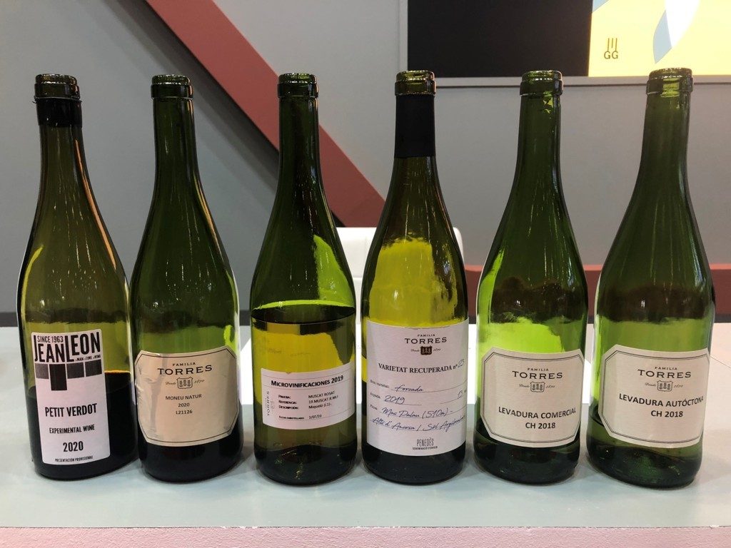 Mireia Torres, directora de Innovación y Conocimiento de Familia Torres ha explicado los principales proyectos de I+D+i de la bodega en una cata inédita en el Salón Gourmets de Madrid. En la imagen, los vinos que se cataron.