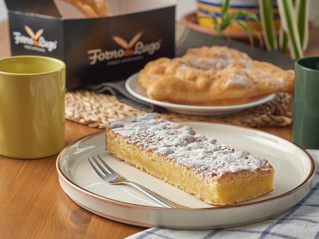 Su gran apuesta por el producto local no solo está enfocada en la cercanía y en la calidad del producto, también en el cuidado del medioambiente. Forno de Lugo ha convertido el Concello de Castroverde en punto neurálgico de sus proveedores. Los productos con sello IGP y DOP son la base de gran parte de las elaboraciones que realizan en su obrador y que llegan a Madrid cada madrugada. En la imagen, su Tarta de Santiago.
