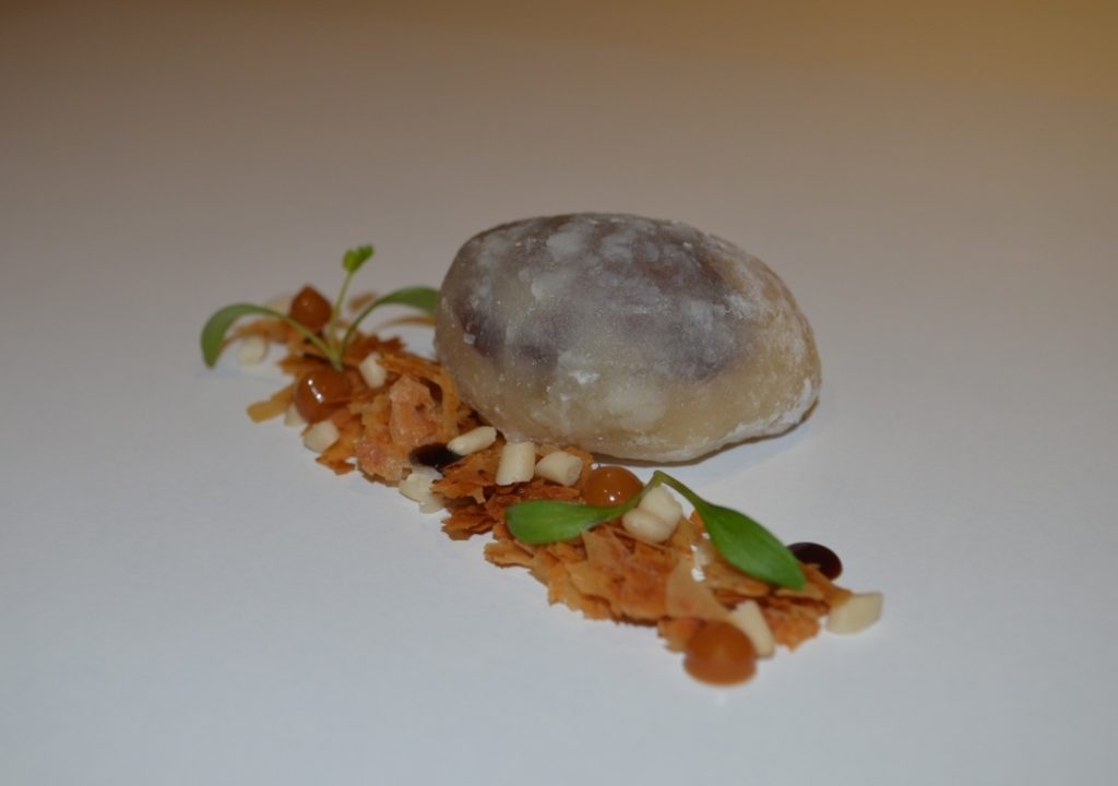 El «mochi de morcilla de Sotopalacios con manzana y piñones» (en la imagen) fue la receta ganadora del 8º Concurso Nacional de Cocina con Morcilla de Sotopalacios, celebrado en las instalaciones de la Casona del Hostal Sotopalacios de Sotopalacios (Burgos), donde los 4 cocineros finalistas han elaborado sus creaciones. El autor de la receta fue Gonzalo Calzadilla García, del “Restaurante Mitte” de Madrid, quien recibió un premio de 750 euros.