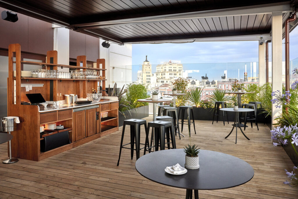 El Cielo de Hijos de Tomás, cuyo acceso es independiente del hotel, es el espacio urbano perfecto para disfrutar del verano y resguardarse del calor gracias a la vegetación que lo rodea y a la estructura móvil del techo, que se abre y se cierra adaptándose a las necesidades climáticas de cada momento. Además, las vistas privilegiadas en las que divisar la Puerta del Sol y todos los tejados emblemáticos del centro y la cocina de calidad con el sello de Familia La Ancha y Nino Redruello, completan la mezcla que convierte El Cielo de Hijos de Tomás en una de las mejores azoteas de Madrid.