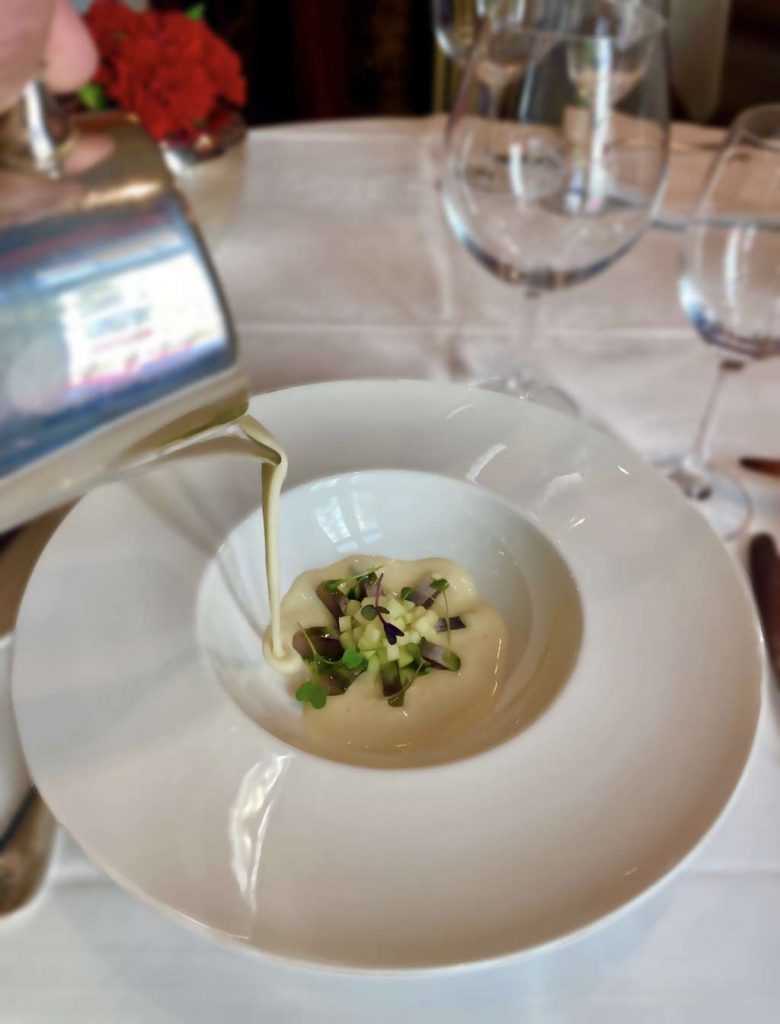 ‘Regala Horcher’: Para celebrar la llegada de la temporada estival, el restaurante ofrece tarjetas de regalo personalizadas con una experiencia a medida única, perfecta para disfrutar durante el mes de julio en Madrid. Una oportunidad perfecta para degustar el menú que consiste en dos entrantes, Consomé Don Víctor y Huevo poché sobre Kartoffelpuffer, dos platos principales, Lomo de corzo asado al natural y Ragout de lenguado y carabineros, y para concluir Crêpes “Sir Holden”. Además del menú, el restaurante ha incluido Vichyssoise de manzana sobre la cama de sardinas ahumadas, el nuevo plato estrella (en la imagen).