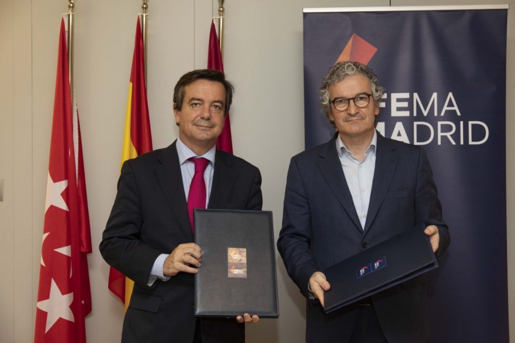 Ifema Madrid y la Asociación Nacional de Industrias de la Carne de España (Anice) han renovado el acuerdo de colaboración -suscrito en 2017- para seguir organizando conjuntamente Meat Attraction. Este compromiso se ha formalizado en el marco de la reunión en la que han intervenido el director general de la institución madrileña, Eduardo López-Puertas, y el presidente de la asociación, Alberto Jiménez ambos en la imagen.