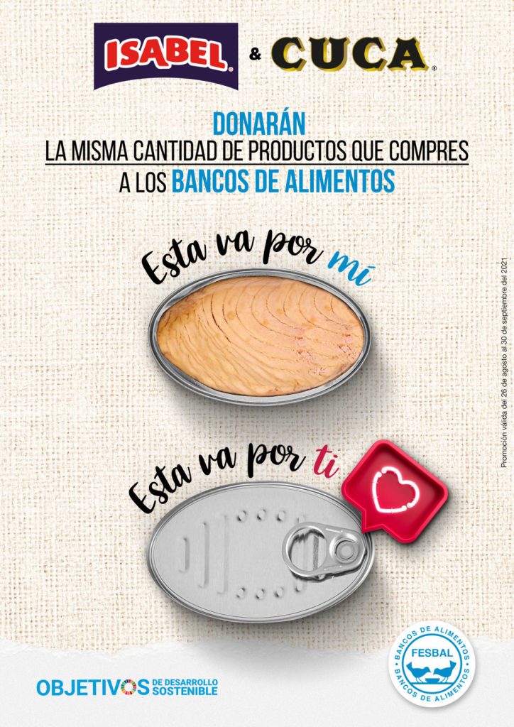 Desde finales de agosto y hasta el 30 de septiembre, está en marcha una acción de colaboración de las marcas Isabel y Cuca con la Federación Española de Bancos de Alimentos (Fesbal), en los supermercados e hipermercados Eroski de toda la geografía española y en los supermercados Caprabo de Cataluña, mediante la cual estas marcas de conservas de pescado se comprometen a donar a una cantidad de producto igual a la adquirida por los consumidores.