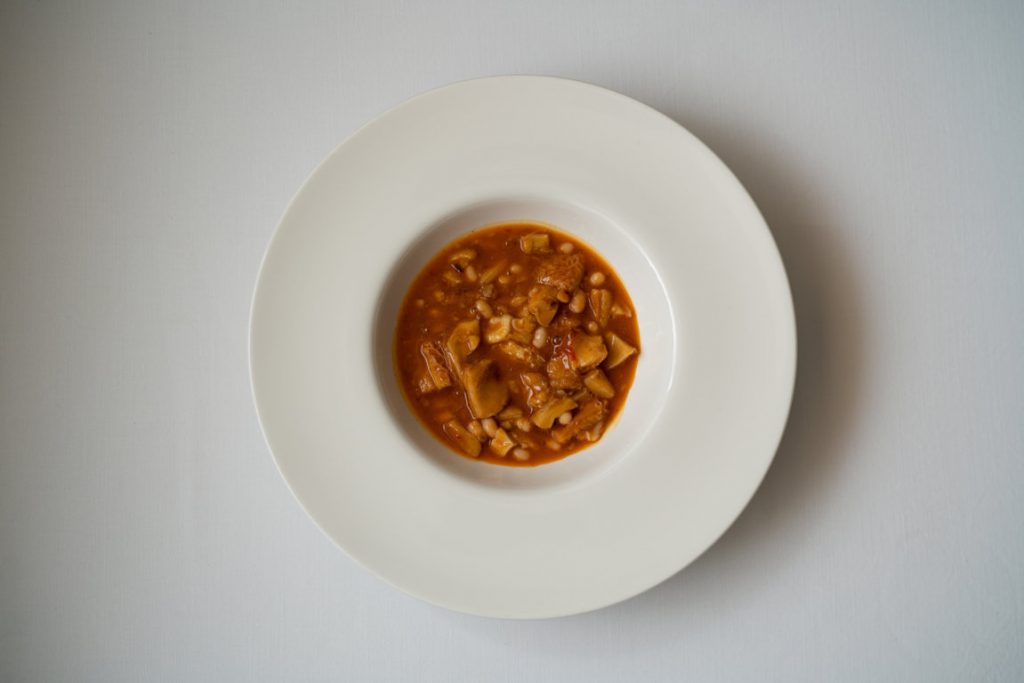 El cocinero Javier Muñoz Calero, del restaurante Ovillo (Madrid), resultó ganador de la 5ª edición del Campeonato Mundial de Callos, organizado por el cocinero asturiano Pedro Martino, que tuvo lugar en el restaurante la Guisandera de Piñera, en Madrid. Calero sorprendió al jurado con un plato de callos con mongetes (alubias blancas, en la imagen). «El éxito de estos callos es que llevan mongetes y no garbanzos y antes de acabar la cocción los ahumo. Y también que tienen un caldo con mucha pata y mucho morro que hace que tengan mucha untuosidad”, señalaba el ganador minutos después de conocerse el veredicto del jurado. El cocinero madrileño declara que fue en el Sant Pau con Carme Ruscalleda y con su hijo Raül Balam donde «me enamoré de esas judías. El garbanzo me parece más arenoso y por eso utilizo las mongetes. En parte les debo esta receta a ellos”.