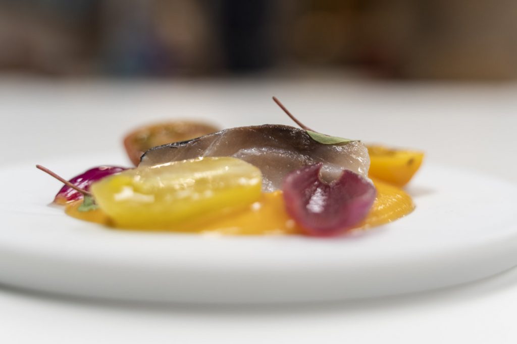 San Sebastián y su provincia añaden a su liderazgo en cocina de autor, con 19 estrellas en la provincia más pequeña del país, y en la cocina popular de asadores, txokos y sidrerías, el de la cocina itinerante y sin protocolos de los bares de Pintxos. La guía de viajes Lonely Planet y el diario The Times apuestan por San Sebastián como un destino principal del turismo gastronómico. En la imagen, el salmorejo con txixarro marinado en sidra de Sukaldean.