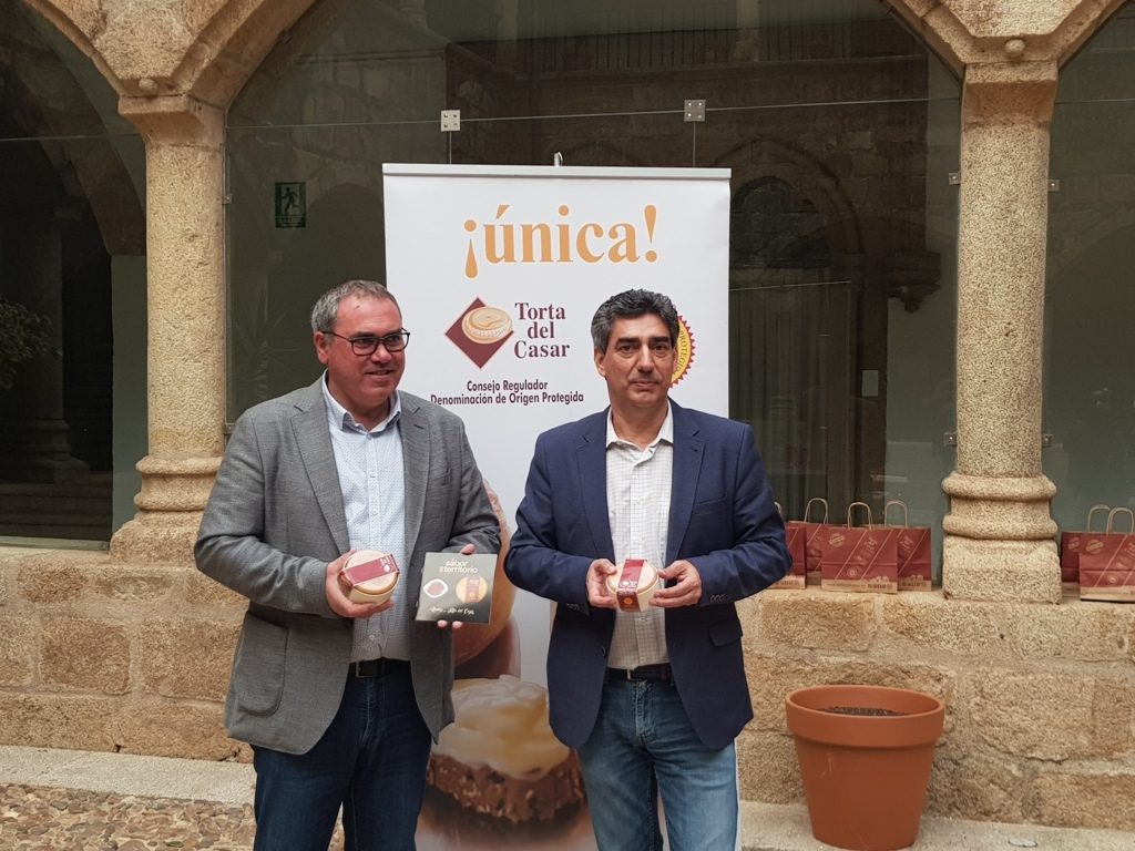 El Consejo Regulador de la Denominación de Origen Protegida Torta del Casar ha certificado durante la pasada campaña 322.928 kilos de queso, lo que significa un aumento de más del 10% respecto a la certificación de 2020, y una facturación de 7.985.295 euros. En la imagen, el presidente del Consejo Regulador, Ángel Juan Pacheco, y el director, Javier Muñoz.