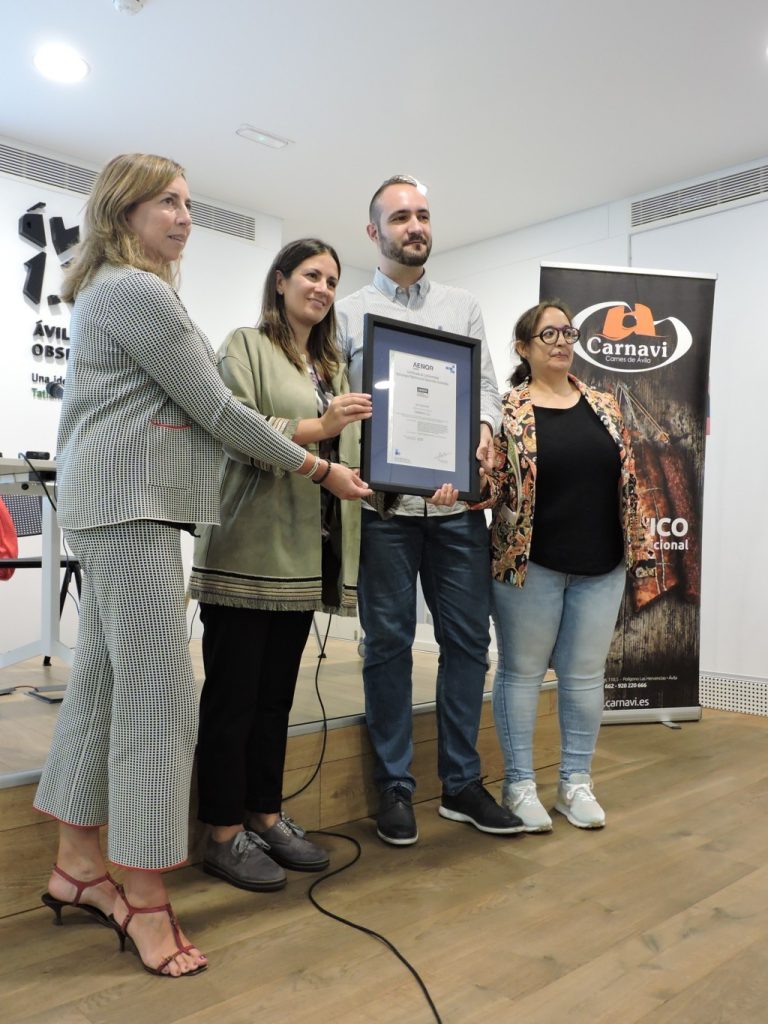 Inmaculada García, directora de Aenor Castilla y León, entregó personalmente el certificado al equipo de Carnavi, integrado por Rául Hernández (CEO de Carnavi), Ana Domínguez (responsable de Calidad de Carnavi) y Borja Hernández (responsable de exportaciones de Carnavi) en un acto presentado y conducido por el periodista abulense Daniel García, que tuvo lugar en la sede de la Fundación Tatiana Pérez de Guzmán de Ávila.