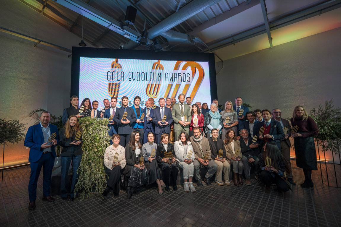 Espacio Rastro Madrid acogió la Gala de entrega de los Premios Internacionales a la Calidad del Aceite de Oliva Virgen Extra Evooleum Awards, que se ha consagrado como la “Gran Fiesta Mundial del AOVE”. En esta edición, el Premio al Mejor AOVE de España fue para el manchego Valdenvero Hojiblanco; mientras que los Premios Embajador del AOVE fueron otorgados al medallista olímpico y ganador de MasterChef Celebrity Saúl Craviotto y al afamado -y triestrellado- chef Quique Dacosta. En la imagen, foto de familia de todos los premiados.