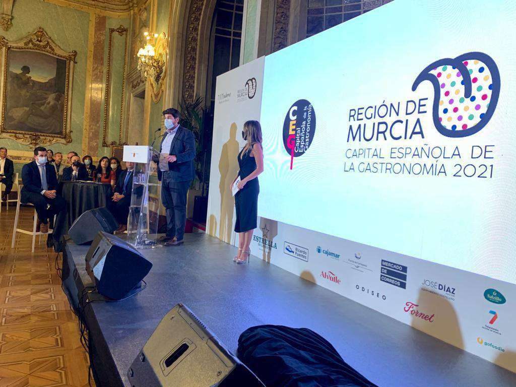 El jefe del Ejecutivo autonómico, Fernando López Miras, presidió recientemente el evento de presentación de la Región de Murcia, como Capital Española de la Gastronomía 2021, un proyecto que quiere celebrar y transmitir la diversidad y la calidad de los productos de la Región y que pone en valor la gastronomía murciana como referente nacional e internacional.