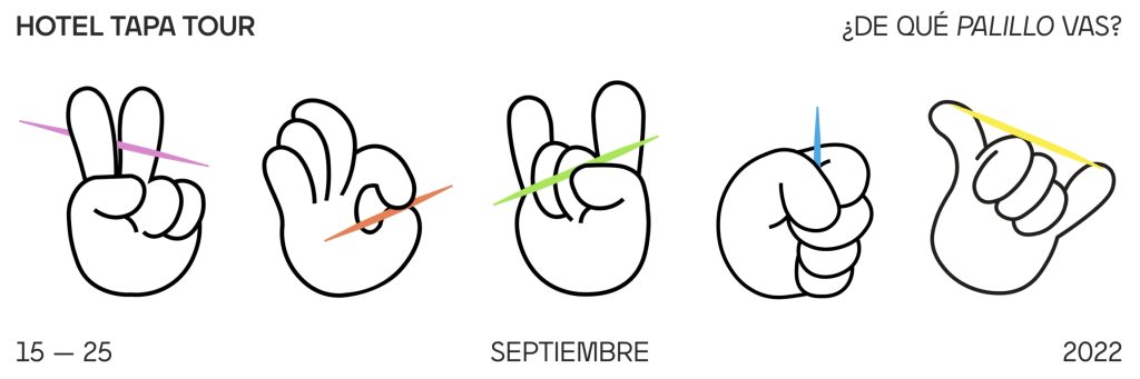 Bajo el lema “¿De qué palillo vas?”, la campaña de Hotel Tapa Tour 2022, desarrollada por el estudio barcelonés Esiete, invita a descubrir, compartir y disfrutar la cocina local a través de la tapa, icono indiscutible de nuestra identidad, no sólo gastronómica sino también cultural. La campaña podrá verse en la ciudad de Madrid a través de más de 100 pantallas del circuito Play Live! de Clear Channel, patrocinador del festival.