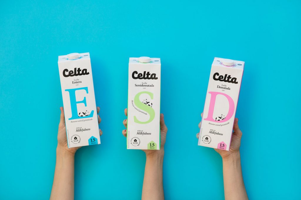 Este nuevo posicionamiento de la marca ha supuesto, además, la renovación de su identidad visual, que abarca desde el logotipo de Leche Celta, que ahora es monocromo y de un solo trazo, hasta el rediseño integral de sus envases. Estos ahora se presentan con un diseño moderno, en el único brik plant-base del mercado de 1,5 litros de alto contenido renovable, reciclables y con tapón de origen vegetal.