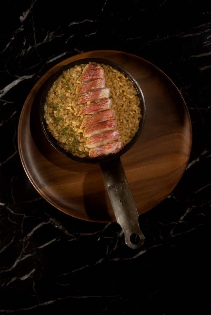 El restaurante Hortensio, de la mano de su chef Mario Valles, estrena nueva carta al cumplir su primer año de vida en el nuevo emplazamiento del Hotel Gran Meliá Fénix de Madrid (Hermosilla, 2. Madrid). Una propuesta culinaria que reúne toda la filosofía y el savoir faire del chef colombiano. Un escenario perfecto para esta apuesta por la materia prima de calidad que aúna lo clásico y lo contemporáneo, de raíces españolas, con guiños a su escuela francesa y esos toques latinos matizados que aporta su origen. En la imagen el arroz meloso de salmonete, uno de sus ingredientes fetiche.
