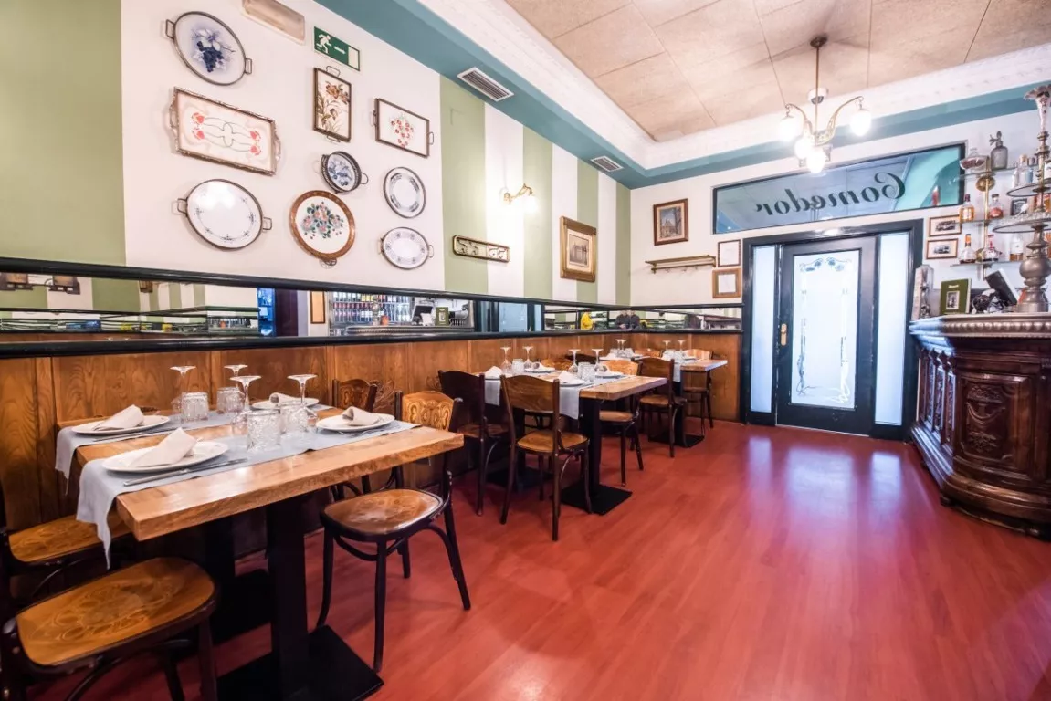 El primer tercio del restaurante está efervescente con los desayunos desde bien temprano; las otras dos salas del comedor, tras las puertas, contienen auténticas joyas envueltas en un estilo art déco que reflejan la pátina del tiempo. Una de ellas es la barra de estaño con la violetera en lo alto, que antes se utilizaba como lavador de vasos con agua continua. Es una reliquia rescatada de un anticuario de las que podría haber tan solo un par más en Madrid. Las sillas también son piezas únicas que compró José Ramón hace años en el extranjero y permanecen intactas. Y separando ambos salones hay una vitrina con juguetes antiguos que coleccionaba el abuelo materno de los Rodríguez. Las paredes del local, concretamente las de la entrada, también son reflejo del cariño de personajes ilustres que han pasado por su sala, una de las últimas, la de Almudena Grandes. Y es que este restaurante está muy ligado a la cultura. Prueba de ello son las dos tertulias semanales con escritores que se organizan bajo su techo. Es un lugar que rebosa historia, desde sus platos a sus paredes.