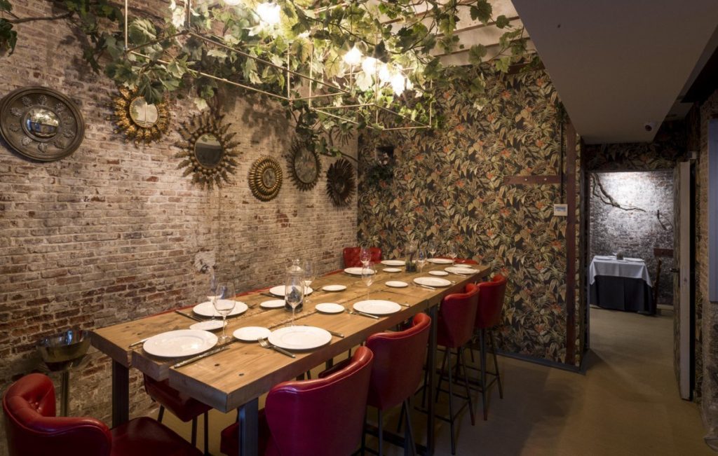 El universo Olmo, situado en el número 5 de la madrileña calle Ferraz, ocupa un espacio de dos plantas donde podrás encontrar diferentes espacios según la sombra de Olmo que necesites; dos comedores principales – Sala Ulmus Procera y Sala Ulmus Glabra – y diferentes privados donde podrás disfrutar desde vistas privilegiadas a los fogones hasta espacios íntimos donde vivir la experiencia sin ser visto. Y por supuesto, la Barra con un ambiente más informal y opciones de carta diferente.