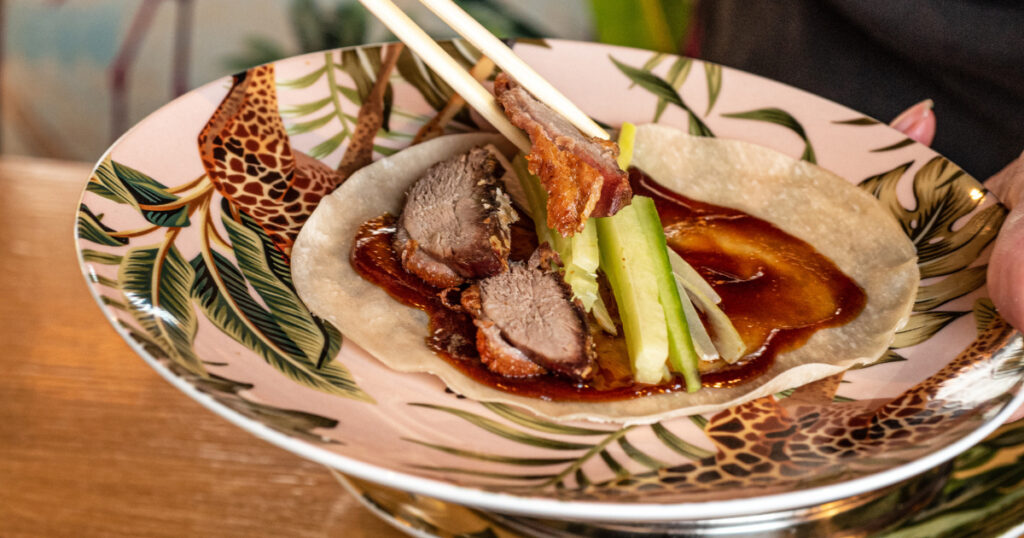El pato laqueado es uno de los mayores tesoros del recetario chino y el gran representante de la cocina asiática en la cultura occidental actual. Originario de la ciudad de Pekín, ya se preparaba para los emperadores en el siglo XIV. En Madrid, no hace falta pertenecer a la familia imperial para poder degustarlo de una forma auténtica y además, casera. El restaurante Shangrila (Leganitos, 26. Madrid) ofrece esta delicatessen en su versión más auténtica: como se comería en una casa china. Se degusta, como manda la tradición, en rodajas, sobre una crepe china con salsa hoisin, cebolleta y pepino en tiras.