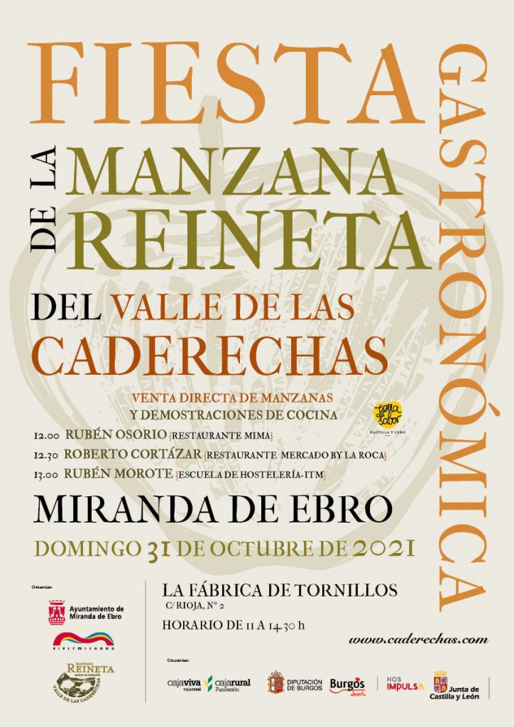 Tras el éxito de las anteriores ediciones de las fiestas gastronómicas de la Cereza del Valle de las Caderechas, será la Manzana Reineta la protagonista de un nuevo evento este domingo en Miranda de Ebro (Burgos). La iniciativa se pone en marcha de forma conjunta por el Ayuntamiento de Miranda de Ebro y la Marca de Garantía “Manzana Reineta del Valle de las Caderechas”.