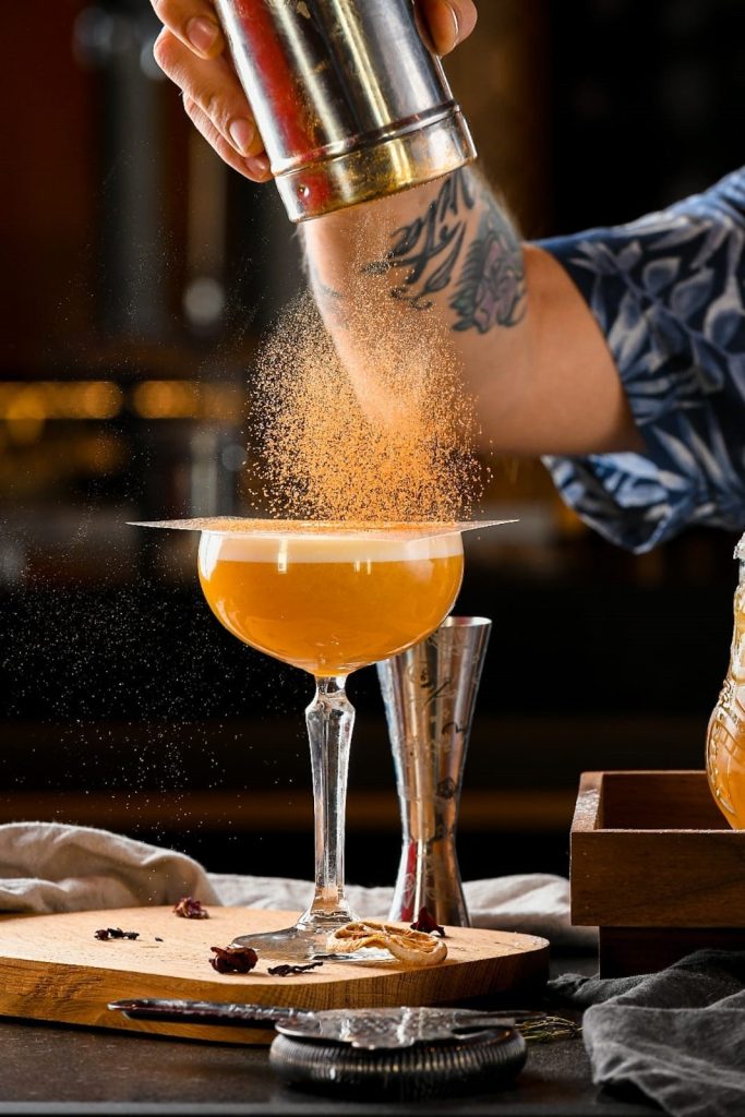 El encargado de la ejecución, el coctelero residente en Pestana CR7 Gran Vía, es Davide Fiorenza quien lleva trabajando en la barra desde la apertura del hotel empezando como coctelero y ahora como jefe de barra. Antes de eso comenzó su carrera en Londres, donde estuvo trabajando en varias coctelerías antes de recaer en Pestana CR7.