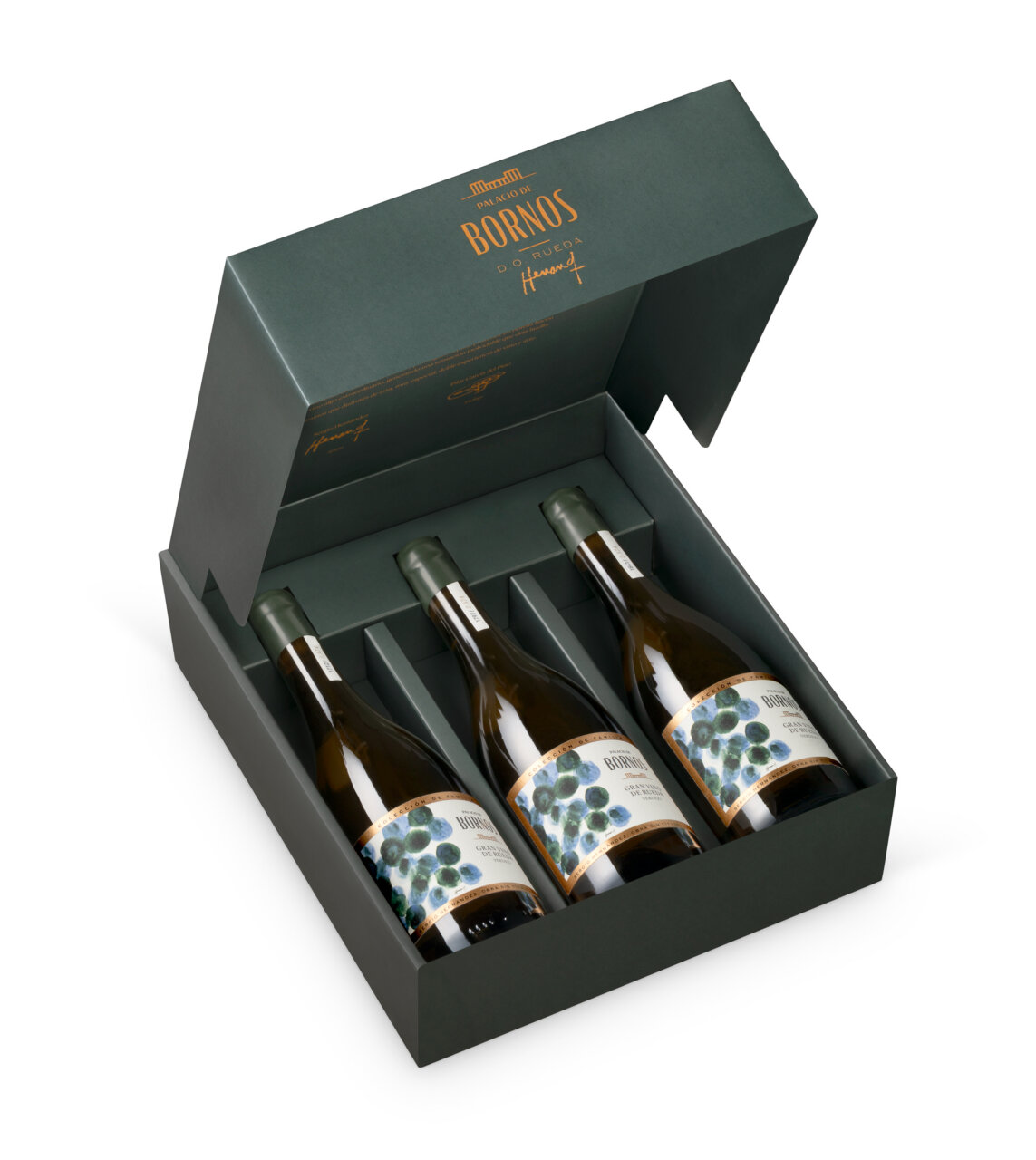 Presentación del estuche con el Gran Vino de Rueda de Palacio de Bornos.