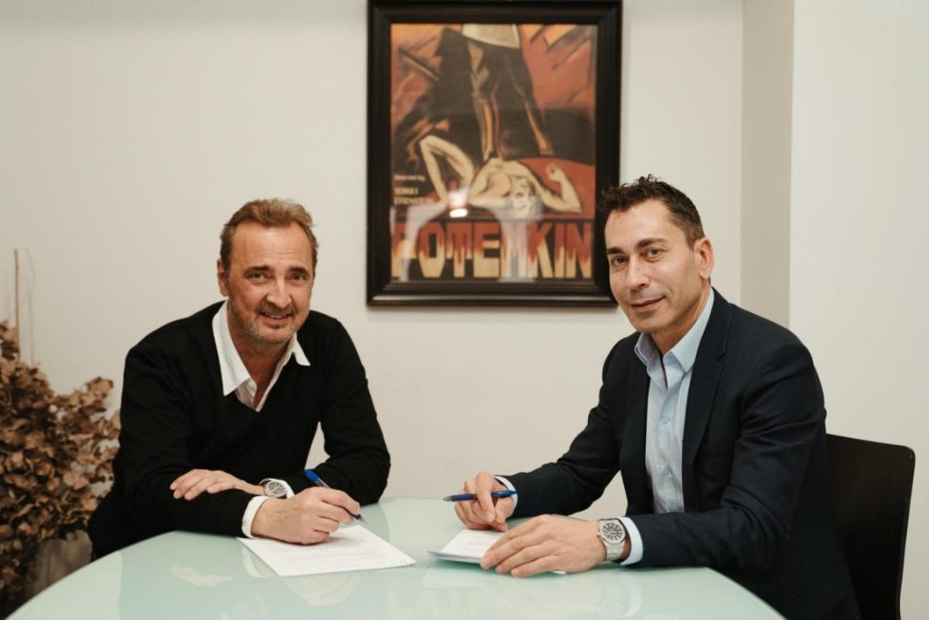 El Teatro Maravillas de Madrid cambia su nombre a Teatro Maravillas Meléndez a raíz del acercamiento de la empresa vallisoletana como apoyo al sector cultural y artístico. En la imagen, Pedro Larrañaga, director del Teatro Maravillas Meléndez, y Javier Meléndez, CEO de Patatas Meléndez, firman el acuerdo.
