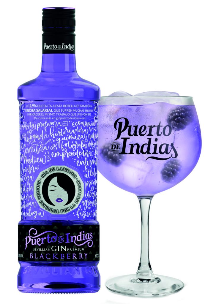 Con motivo del Día Internacional de la Mujer, el 8 de marzo, Puerto de Indias, ginebra dulce, pionera en crear la categoría de Ginebra Rosa y líder de este segmento de mercado, ha sorprendido con el lanzamiento de una edición especial de su ginebra de mora, que nacía hace menos de un año, creada por un equipo de mujeres, en homenaje a sus consumidoras. El objetivo de esta nueva edición no es otro que el de alzar la voz en favor de la igualdad. En esta ocasión, para visibilizar el problema de la brecha salarial entre hombres y mujeres, a la orden del día en nuestro país.