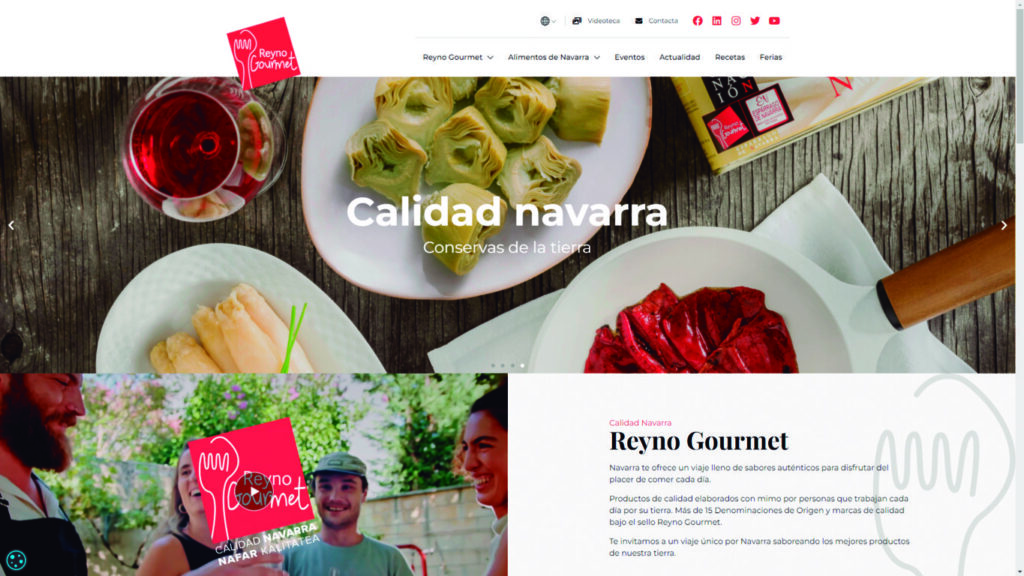 Reyno Gourmet acaba de lanzar una nueva web con la que se quiere mejorar la imagen y presencia de los productos de Calidad de Navarra en la red. El portal se amplía con nuevos contenidos y funcionalidades además de ofrecer información en profundidad sobre Reyno Gourmet y los productos con Denominación de Origen, Indicación Geográfica y otras Certificaciones de Calidad de Navarra.