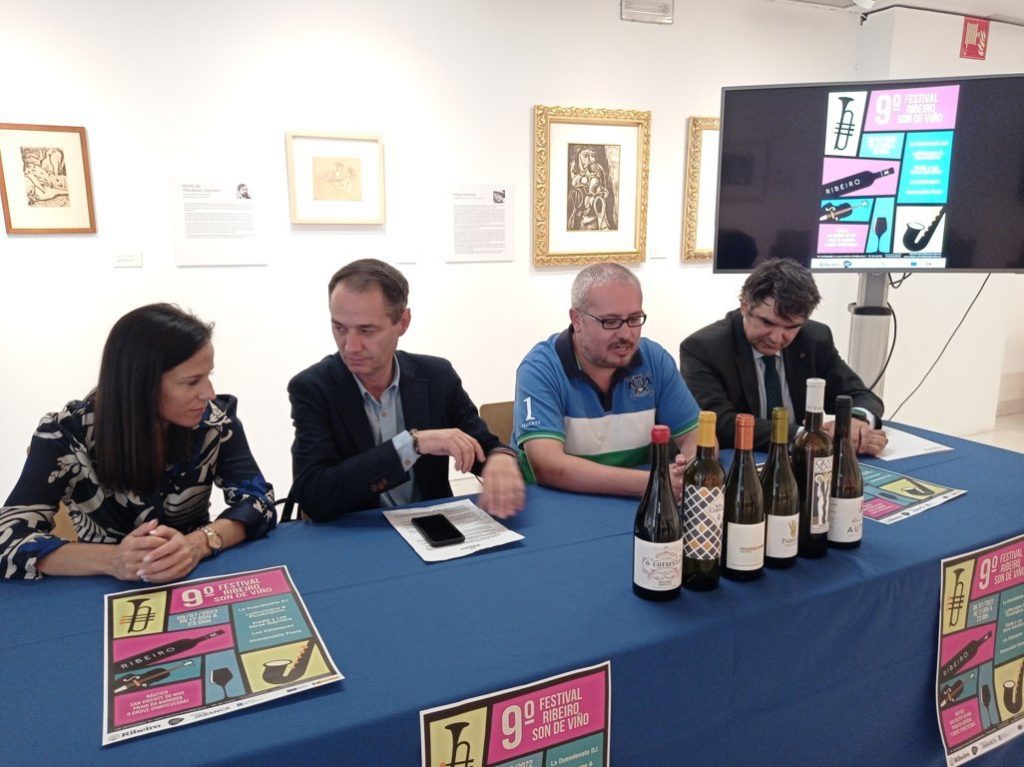 Ribeiro Son de Viño 2022, el festival que nació para fusionar los vinos de la Denominación de Origen Ribeiro con la mejor música a orillas del mar cumple nueve años y lo festejará el sábado 9 de julio en el Náutico de San Vicente do Mar, O Grove, con las actuaciones de Inmaculate Fools, Los Estanques, Eladio y los Seres Queridos, LaMontagne & PicoAmperio y la Duendeneta Dj. En la imagen, acto de presentación del Festival en Ourense.