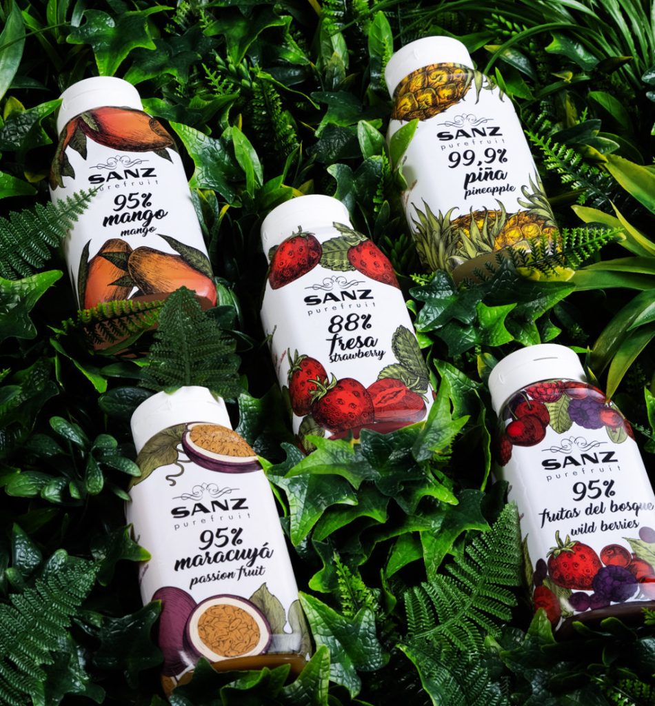 Sanz Cocktails, la marca de jarabes más antigua de España, da un paso más en su portfolio de productos y saca al mercado dos nuevas referencias de la gama Purefruit: purés con hasta el 99,9 % de pura fruta, no congelados, y, que una vez abiertos, duran hasta cinco semanas. Piña (99,9 % de contenido en fruta) y frutas del bosque (95%), son los nuevos sabores de esta familia de productos que cuenta también con maracuyá, mango y fresa.