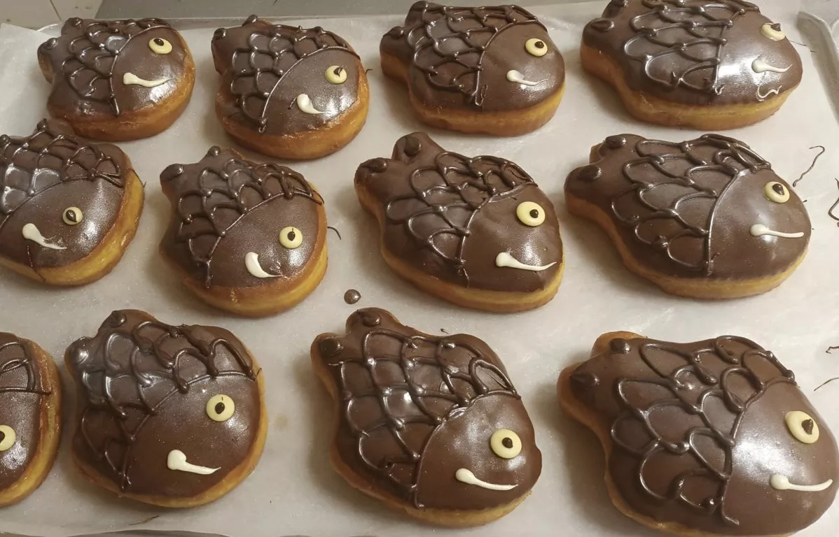 Las sardinas de chocolate de la pastelería La Mallorquina (con varias sedes en Madrid) se caracterizan por su elaboración diaria y minuciosa en su obrador. Su propuesta parte de una masa de berlina frita que se moldea en formas que imitan a las sardinas reales. Se baña en chocolate con leche de alta calidad y se decora con chocolate negro y blanco.