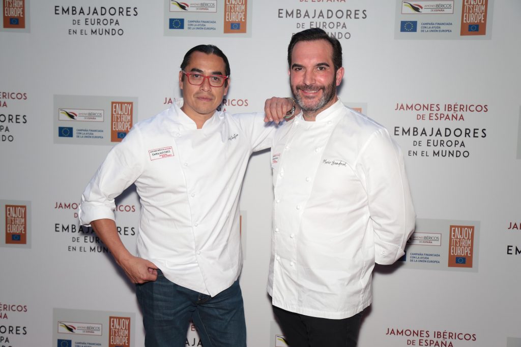 “Jamones Ibéricos de España, Embajadores de Europa en el Mundo”, la campaña de promoción internacional más ambiciosa impulsada por el sector Ibérico hasta la fecha, con el apoyo decidido de la UE, desarrollará en México una potente batería de acciones divulgativas y experienciales que situarán al Jamón Ibérico en el “top of mind” de los consumidores aztecas. En la imagen, los chefs Carlos Gaytán y Mario Sandoval, embajadores de la campaña.