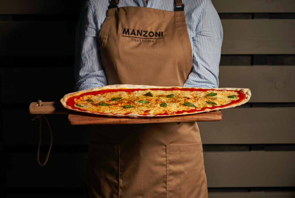 Por supuesto, cualquier comanda de Trattoria Manzoni debe incorporar sus icónicas pizzas, que se elaboran con la misma receta que creó hace cuarenta años el propio padre de Stefano, Alberto Carta, quien ofrecía a los clientes de su restaurante en el lago de Como una pizza de forma ovalada con una masa muy fina, ligera y de fermentación larga. Cada pizza se prepara a 220º durante 4-5 minutos en un horno de piedra reflectaria traído de Italia. El resultado es una receta absolutamente deliciosa y fácil de digerir gracias a que sus masas llevan poca levadura y cuentan con una fermentación mínima de 48 horas. Desde la perfecta desnudez de Marguerita con tomate fresco, mozarella, albahaca y orégano a otras opciones como la de speck, gorgonzola y rúcula, o su también reconocida Pizza Tartufo, con huevos de codorniz, crema de camembert y trufa natural en finas lascas, siempre será un acierto con la posibilidad además de pedirlas por mitades.