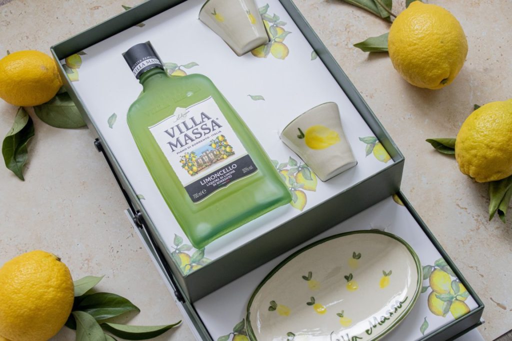 A través del color y la belleza de la Costa Amalfitana, lugar en el que nace este limoncello, ambos han creado una pieza única que respira estilo en estado puro. El diseño del estuche se ha llevado a cabo por la ilustradora Carolina Leoni de Ave Studio. Respecto al interior, la icónica botella se encuentra junto a un juego de chupitos compuesto por bandeja y dos pequeños vasos.