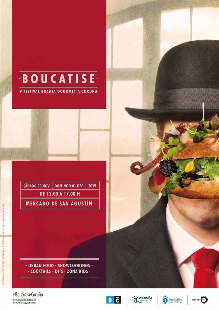 La ciudad de A Coruña volverá a homenajear al Bocata Gourmet el próximo fin de semana. El Festival Boucatise tendrá lugar los días 30 de noviembre y 1 de diciembre en el emblemático Mercado de San Agustín de A Coruña. Boucatise es un festival que se consolida dentro de la programación de eventos gastronómicos coruñeses, que hace un recorrido por la gastronomía y materia prima gallega de mano de reconocidos cocineros de A Coruña desde el punto de vista de la filosofía «gourmet street food».